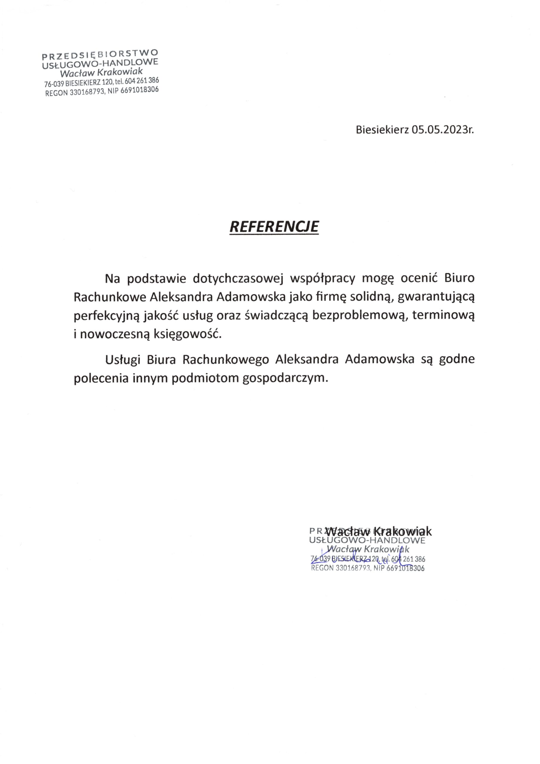 Jesteśmy biurem rachunkowym świadczącym usługi na terenie Szczecina i okolic, a także zdalnie na terenie Polski i Europy. Nasza wiedza i działania pomagają wielu przedsiębiorcom. Poniżej znajdą Państwo referencje. Zachęcam do zapoznania się z opiniami naszych klientów na temat naszej współpracy.